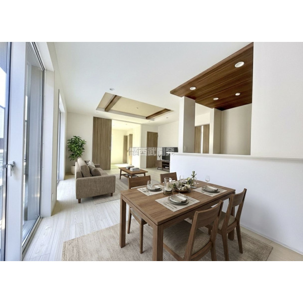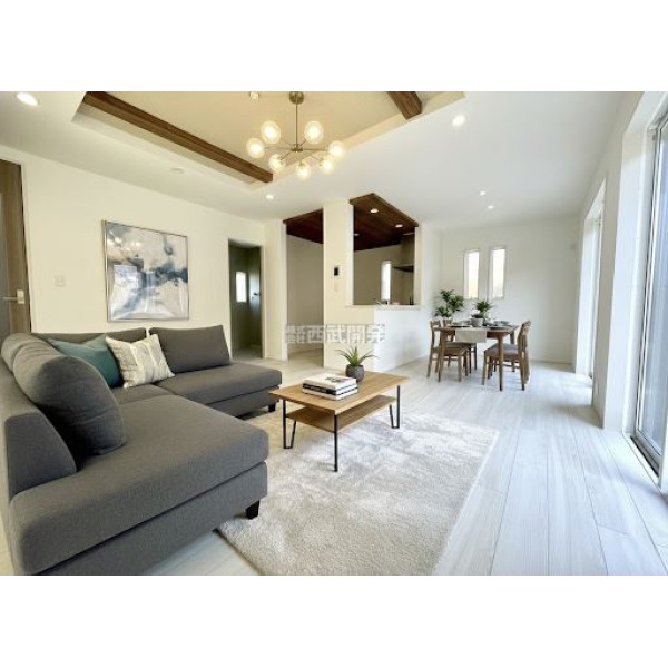 - 全7棟分譲地/リビング17.5帖の4LDK住宅/天井を高くしてリビングに開放感をプラスした折上天井