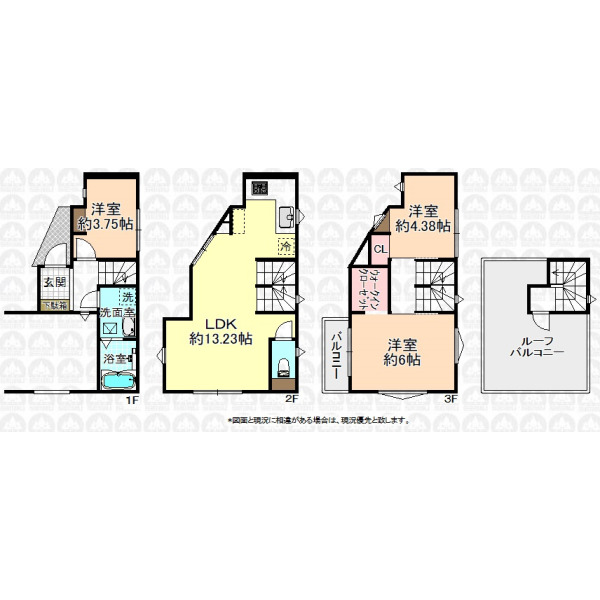 - 3階建て屋上に13.15m2の広々とした開放感のあるルーフバルコニー付き3LDK!