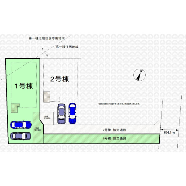 | 備 考 | 土地面積に協定通路及び協定部分約70.23m2含む/本地北西側の一部が第一種低層住居専用地域(建ぺい率60%・容積率100%)です/協定通路及び協定部分は買主負担で地役権設定が必要です/フラット35利用の場合は適合証明書発行手数料がかかります |