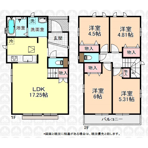 | 備 考 | フラット35利用の場合は適合証明書発行手数料がかかります/ゴミ置場持分0.22m2あり/転回広場持分2.28m2あり |