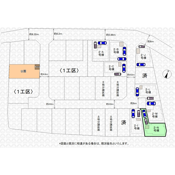 | 備 考 | ゴミ置場持分約0.22m2有/転回広場持分2箇所合計約2.28m2有/フラット35利用の場合は適合証明書発行手数料がかかります/カースペース2台は車種によります |