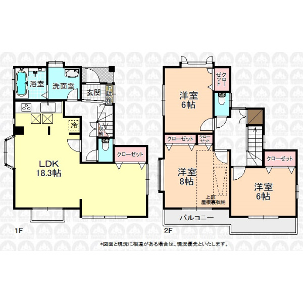 - 屋根裏収納付/6m公道面/南東側庭先につき陽当良好/土地面積約30坪/2駅利用可/全室2面採光/全室6帖以上