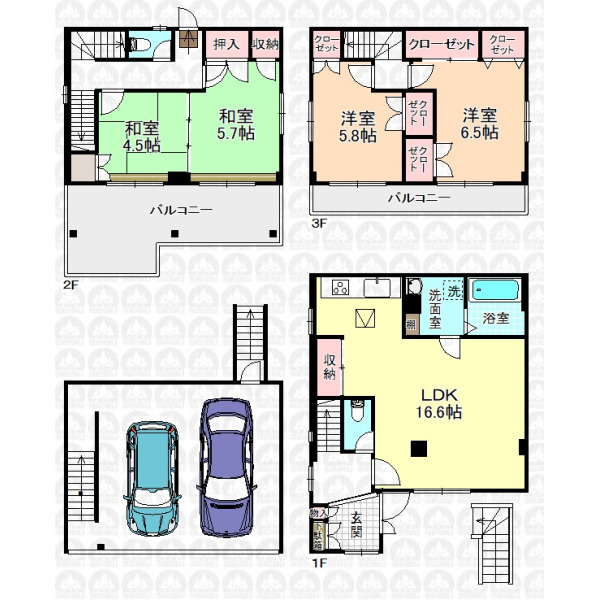 | 設 備 | 東京電力/公営水道/都市ガス/下水/追い焚き/ウォシュレット/システムキッチン/床下収納/フローリング/クローゼット | ||