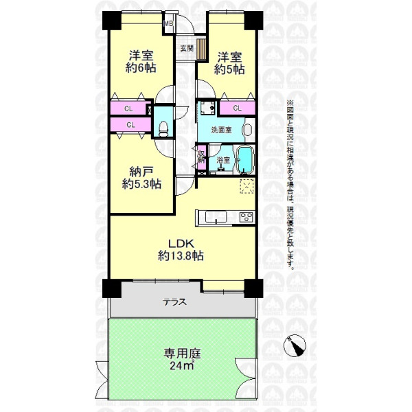 - 1階部分、テラス・専用庭付き/2025年2月フルリフォーム済み中古マンション/2SLDK