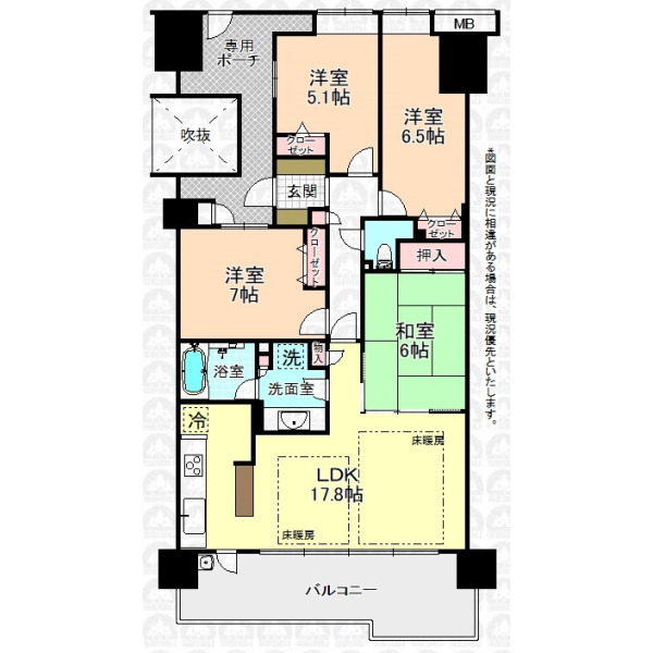 | 専有面積 | 91.61m²(壁芯) | 間取り | 4LDK |