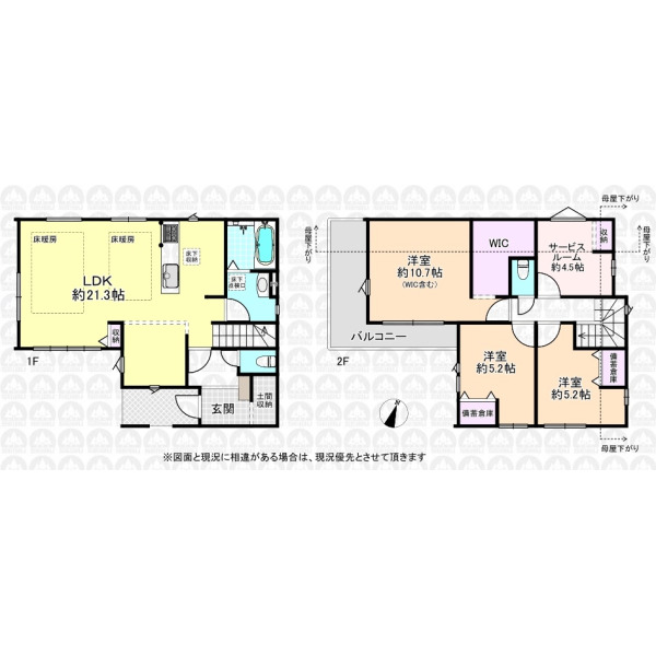 備 考 | フラット35適合証明書の取得には別途費用がかかります。/2階備蓄倉庫部分は容積率不算入です。 |