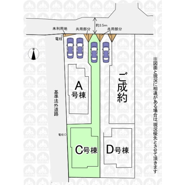 | 備 考 | フラット35をご利用の場合、別途適合証明書発行費用が掛かります/敷地面積に共有部分1.12m2含む/敷地面積に路地状部分約44m2含む |