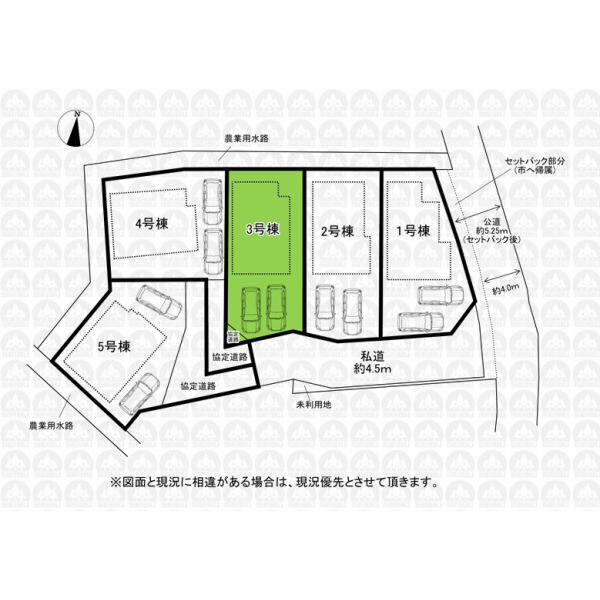 | 備 考 | フラット35をご利用の場合、別途適合証明書発行費用が掛かります/太陽光発電システム利用には条件がございます/未利用地持分7.05m2×1/5あり/敷地面積に協定道路部分約2.75m2含む/円滑な車両通行を目的とした地役権を設定することを契約条件とします。 |