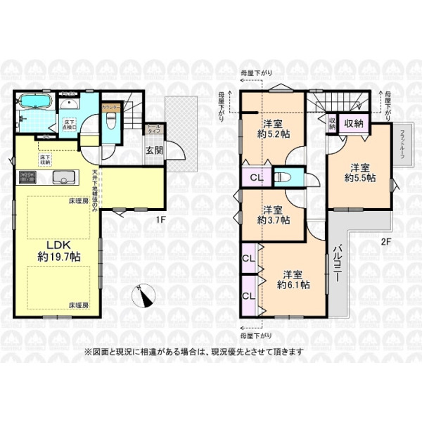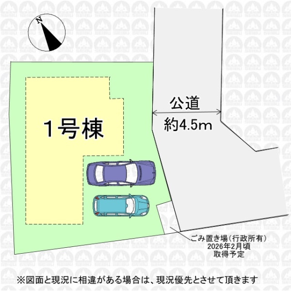 | 備 考 | フラット35をご利用の場合、別途適合証明書発行費用が掛かります/ゴミ置き場(面積2.0m2、行政所有)を2026年2月頃取得予定 |