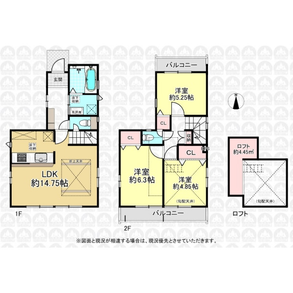 | 設 備 | 東京電力/公営水道/都市ガス/下水/対面キッチン/追い焚き/シャンプードレッサー/浴室換気乾燥機/システムキッチン/食器洗浄乾燥器/浄水器/床下収納/ロフト/フローリング/クローゼット/住宅性能評価付き/太陽光発電システム/設計住宅性能評価付/建設住宅性能評価付/フラット35適合証明書 | ||