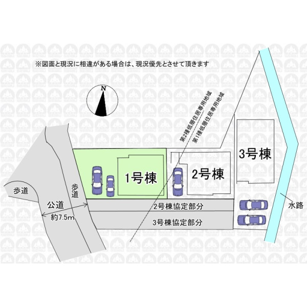 | 備 考 | 敷地南東側一部第一種低層住居専用地域含む(建ぺい率40%・容積率80%) |