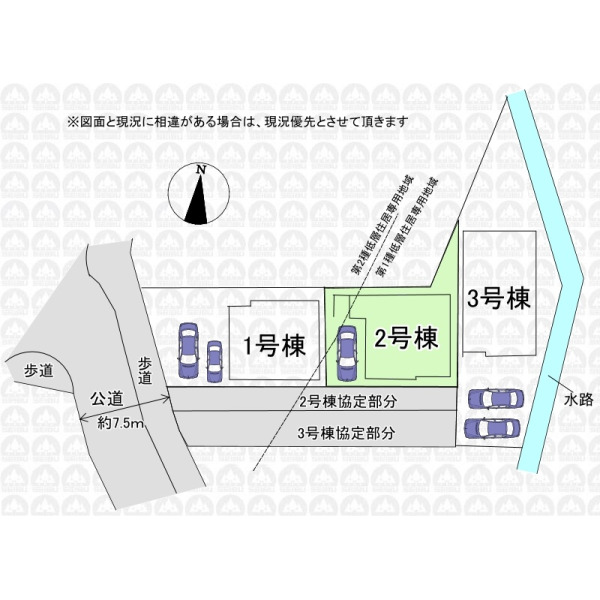 | 備 考 | フラット35をご利用の場合、別途適合証明書発行費用が掛かります/敷地北西側一部第二種低層住居専用地域含む(建ぺい率40%・容積率80%)/敷地面積に協定部分約47.33m2含む/不整形地 |