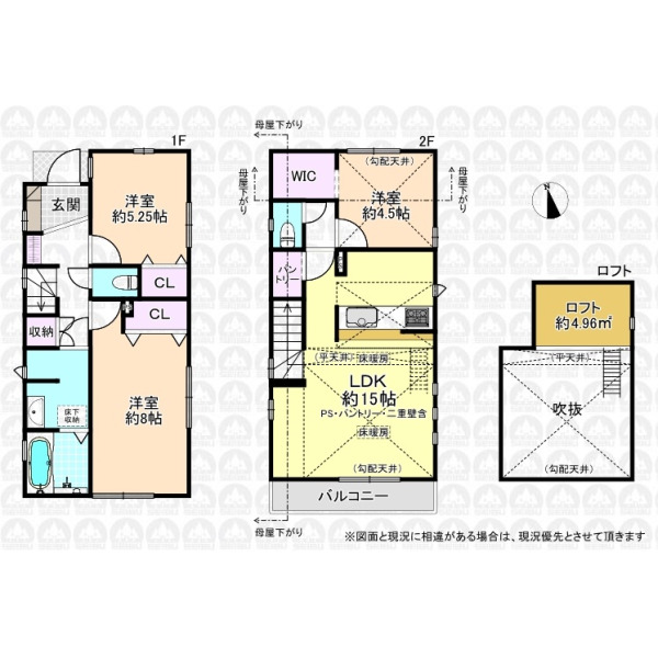 | 設 備 | 東京電力/公営水道/都市ガス/下水/対面キッチン/追い焚き/シャンプードレッサー/浴室換気乾燥機/ウォシュレット/システムキッチン/食器洗浄乾燥器/浄水器/床下収納/ウォークインクローゼット/ロフト/フローリング/クローゼット/住宅性能評価付き/太陽光発電システム/設計住宅性能評価付/建設住宅性能評価付/フラット35適合証明書 | ||