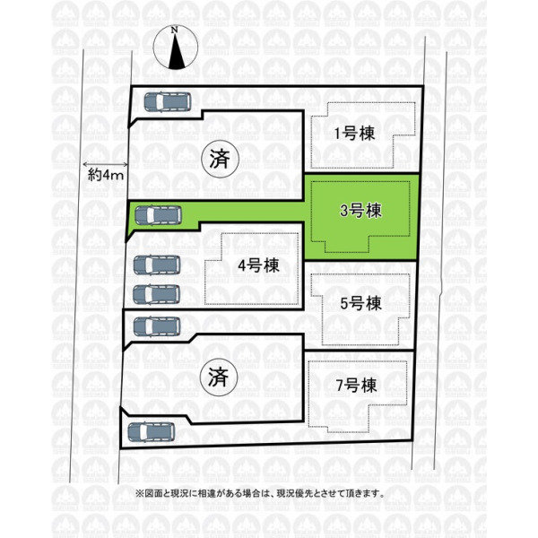 | 備 考 | フラット35をご利用の場合、別途適合証明書発行費用が掛かります/敷地面積に路地状部分約45m2含む/本分譲地内にあった従前の建物の基礎杭については、現況地盤高さより約2mの深さまで杭をカットし撤去していますが2m以深については存置しております |