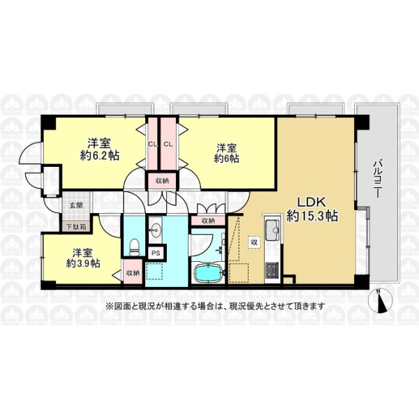 専有面積 | 68.80m²(壁芯) | 間取り | 3LDK |