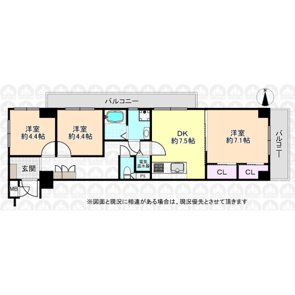 | 専有面積 | 60.46m²(壁芯) | 間取り | 3DK |