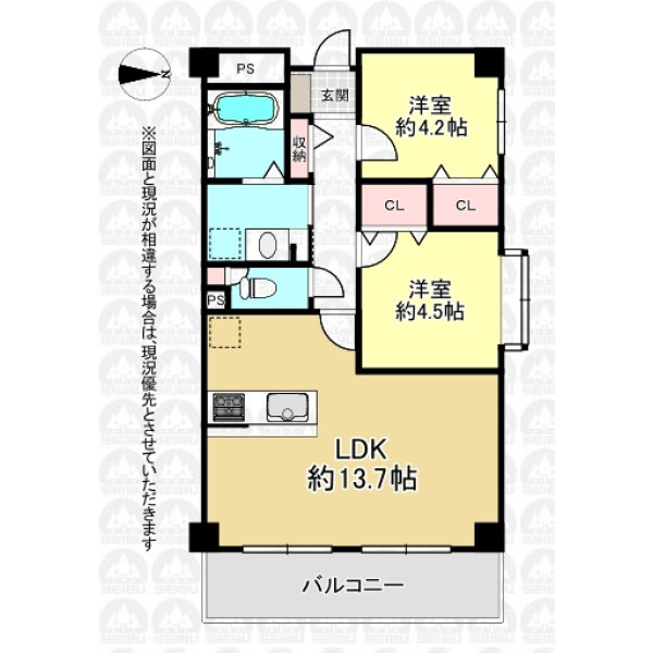 | 専有面積 | 52.13m²(壁芯) | 間取り | 2LDK |