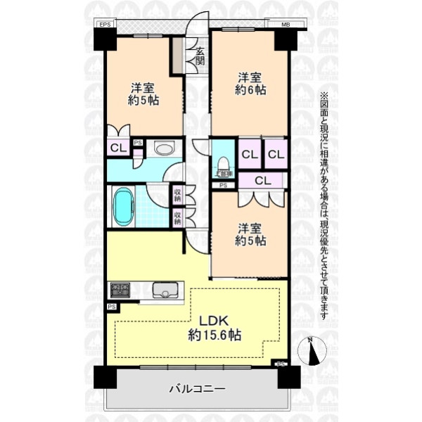 | 専有面積 | 71.57m²(壁芯) | 間取り | 3LDK |