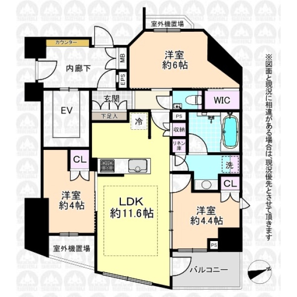 | 専有面積 | 57.02m²(壁芯) | 間取り | 3LDK |