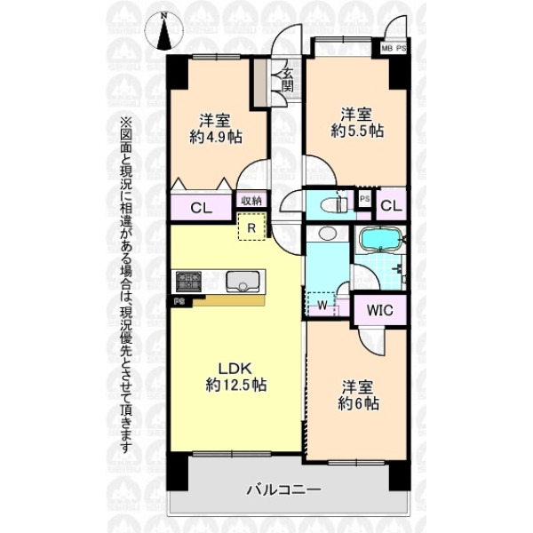 | 専有面積 | 62.97m²(壁芯) | 間取り | 3LDK |