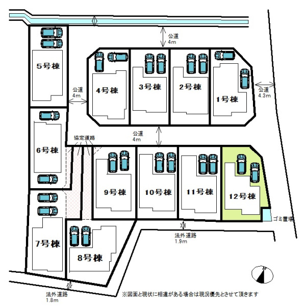 備 考 | ゴミ置き場持分0.3m2あり/太陽光発電システムはリース契約となります。リース契約期間は10年間、毎月利用料金は8899円で期間終了後は無償譲渡されます/南東側法定外道路1.8mあり/建物面積103.09m2に車庫部分2.69m2含む |