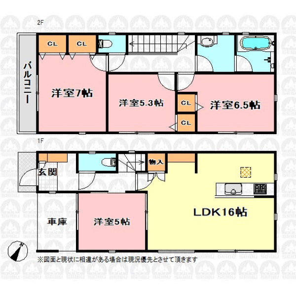 | 備 考 | 建物面積101.85m2に車庫部分7.86m2含む/照明等は付帯しません |