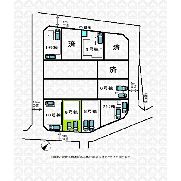 | 備 考 | ゴミ置き場持分0.36m2あり/建物面積104.33m2に車庫部分4.96m2含む |