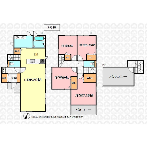 - 二沿線利用可/全5棟現場/LDK20帖対面キッチン/使い方は自由広々ルーフバルコニー/地盤保証/収納豊富!