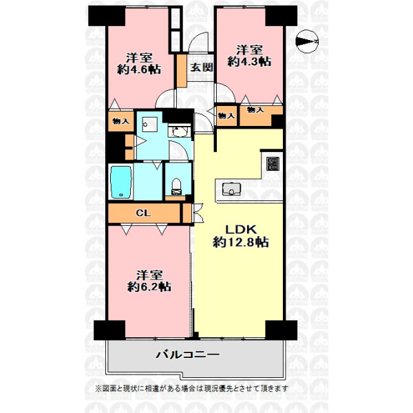 | 専有面積 | 62.42m²(壁芯) | 間取り | 3LDK |