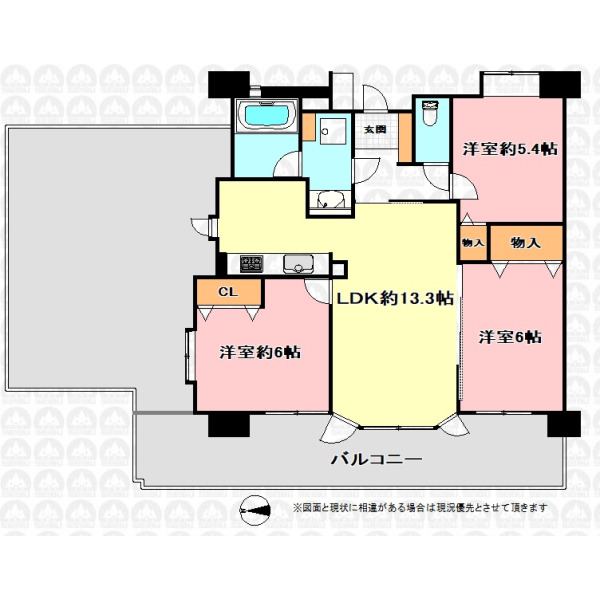 | バルコニー面積 | 17.3㎡ | バルコニー方向 | 西 |