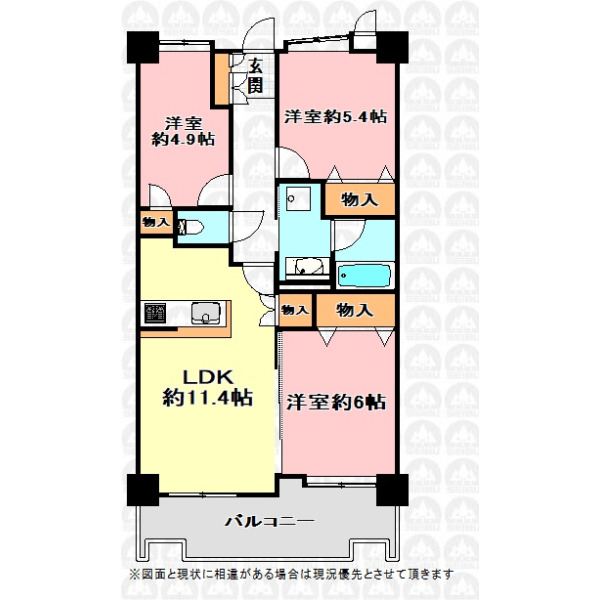 | 専有面積 | 61.82m²(壁芯) | 間取り | 3LDK |