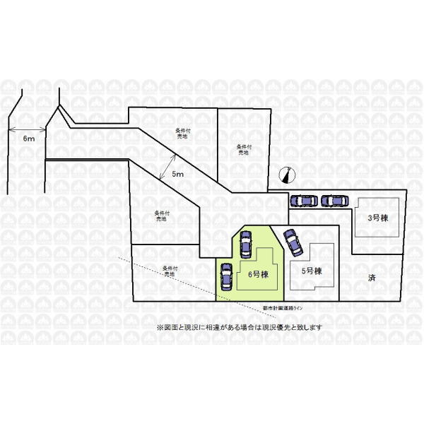 | 備 考 | カースペース2台(車種による)/フラット35をご利用の場合は別途適合証明取得が掛かります/建物面積にはインナーバルコニー部分1.65m2を含みます/土地の南端一部に都市計画道路(計画決定)あり/引渡時迄に地目を宅地へ変更します |
